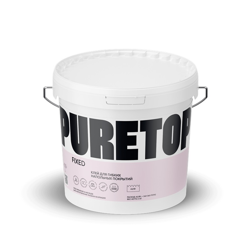 Однокомпонентный клей на основе акриловой дисперсии с высокой клеящей способностью. Клей для гибких коммерческих ПВХ покрытий (включая покрытия на подложке из полиэстера, минеральных волокон) в рулонах и плитке, виниловых покрытий, кварц-виниловой плитки, текстильных покрытий. Для впитывающих влагу оснований. Подходит для системы «Тёплый пол»