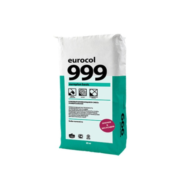999 Europlan Basic — Универсальная самовыравнивающаяся смесь для финишного выравнивания минеральных поверхностей. Для применения в жилых и общественных помещениях под последующий настил финишного покрытия. Морозостойкий при транспортировке. Не воспламеняется.