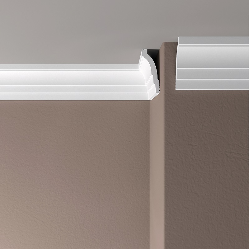 Потолочный плинтус (карниз) bello deco изготовлен из полистирола высокой плотности (дюрополимера), максимально долговечный материал, он обладает достаточно высокой изностойкостью и другими механическими характеристиками: Материал пропитан влагостойкой, плотной грунтовкой. Пропитка позволяет использовать плинтус для декорирования комнат с повышенной влажностью. Для монтажа плинтуса рекомендуется использовать хороший монтажный клей или жидкие гвозди. Преимущества: Не желтеет со временем Возможно окрашивание в любой цвет, не дает усадки, не продавливается и не царапается.