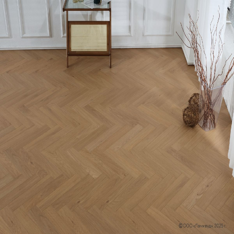 SHELBY Елочка Английская — это ламинат, который кардинально меняет представление о напольных покрытиях, объединяя в себе аристократичный стиль, воплощение строгой элегантности и передовые технологии.