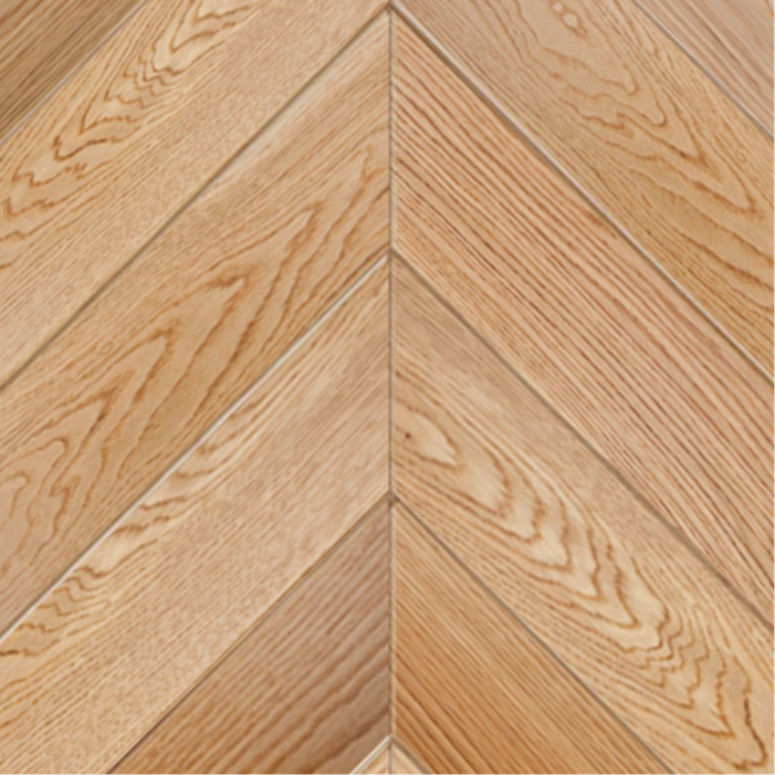 Мозаичный инженерный паркет «Французская ёлка» – это двухслойная конструкция, в которой верхний слой — ценная древесина европейского дуба, а нижний — высококачественная влагостойкая фанера. Все паркетные планки одинаковой длины имеют соединительные пазы и гребни на противоположных сторонах, а также фаски по периметру. Угол запила планок – 45º. Паркет изготавливается парами (правым и левым). На планках выполнены фаски по периметру. Покрытие — бесцветный шелковистый УФ лак или масло на выбор.