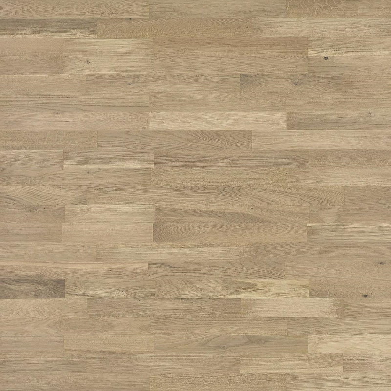 Паркетная доска Дуб Bianco Grande имеет классическую 3-слойную конструкцию: ценный слой — из древесины породы дуб толщиной 2,5 мм, нижележащие — из древесины хвойных пород. Твердость паркетной доски по Бринеллю — 3,7. Этого достаточно для надежной службы напольного покрытия в течение нескольких десятилетий.