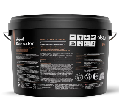Покрытия лаками или лазурями с хорошей несущей способностью: Прочные покрытия с тонкослойными лаками или лазурями зашлифовать, очистить и протестировать на совместимость с краской-лазурью Olsta Wood Renovator.
