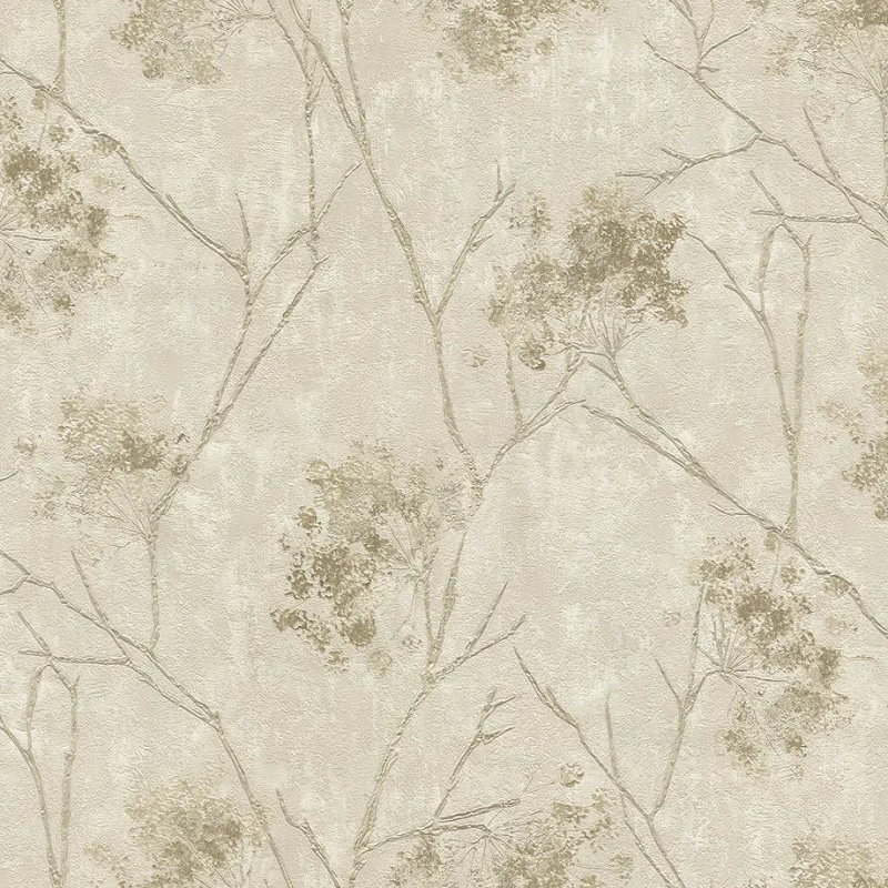 Рулонные обои Emiliana Parati (Эмильяна Парати) 73420 Ветки холодное золото на серо-бежевом 1.06х10.05 м. винил на флизелине, Италия