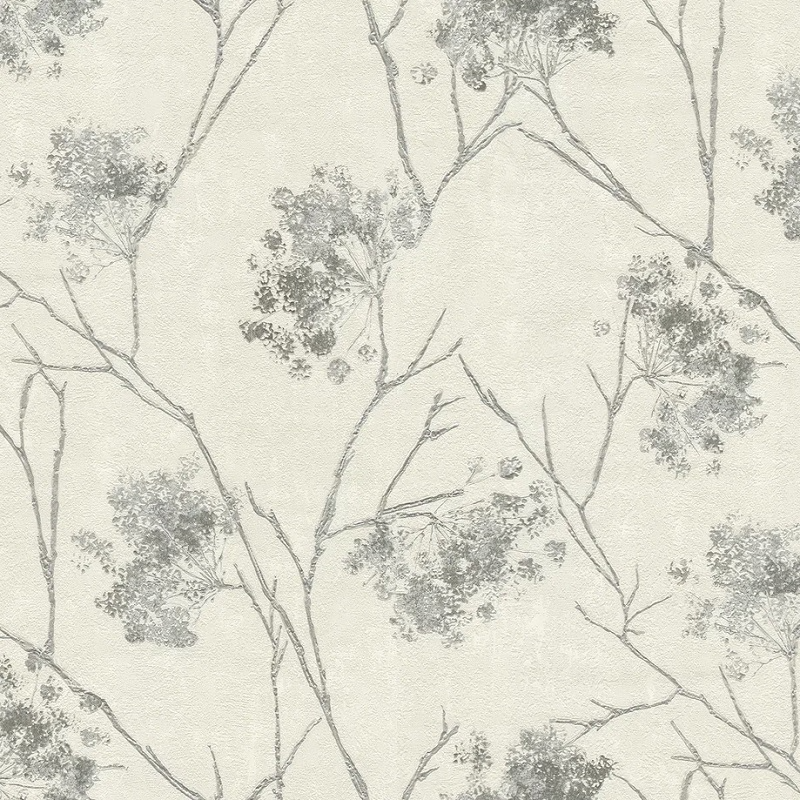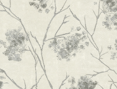 Рулонные обои Emiliana Parati (Эмильяна Парати) 73422 Ветки холодное серебро на белом 1.06х10.05 м. винил на флизелине, Италия