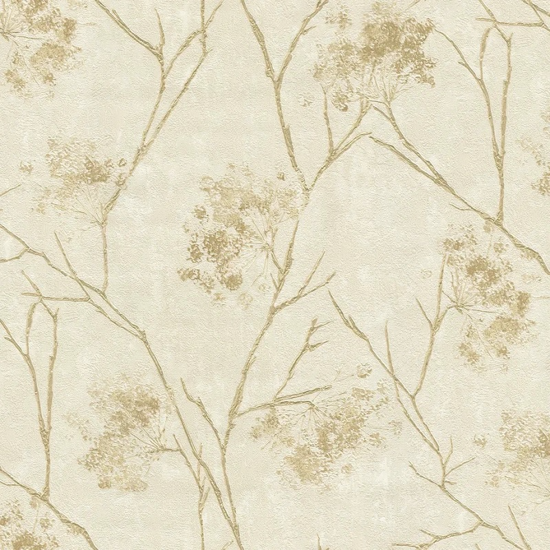 Рулонные обои Emiliana Parati (Эмильяна Парати) 73423 Ветки золотые на серо-бежевом фоне 1.06х10.05 м. винил на флизелине, Италия
