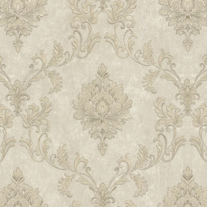 Рулонные обои Emiliana Parati (Эмильяна Парати) 73427 Дамаск 2 холодное золото на бежево-сером 1.06х10.05 м. винил на флизелине, Италия