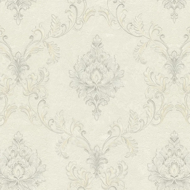 Рулонные обои Emiliana Parati (Эмильяна Парати) 73428 Дамаск 2 теплое серебро на белом 1.06х10.05 м. винил на флизелине, Италия
