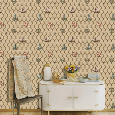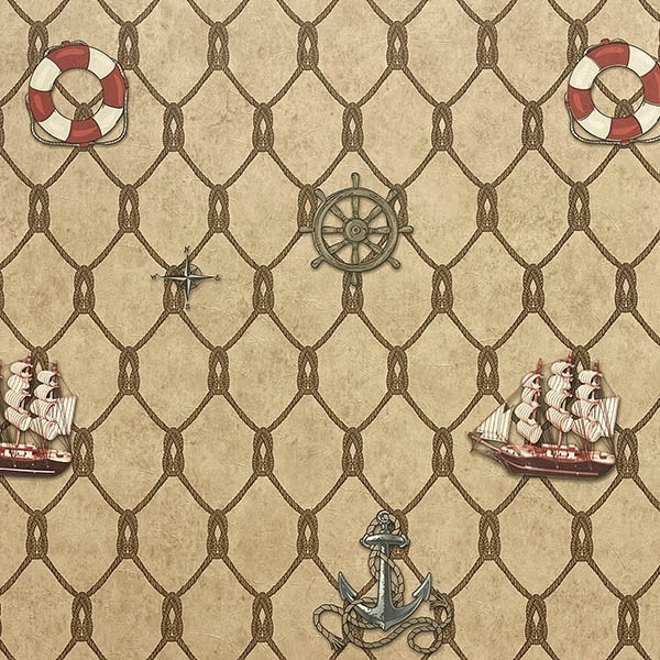 Рулонные обои Makario (Макарио) 3512-2 мотив корабли на бежевом фоне 1.06х10 м. винил на флизелине, Китай