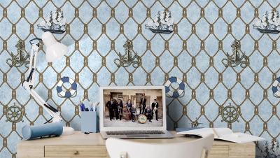 Рулонные обои Makario (Макарио) 3512-3 мотив корабли на синем фоне 1.06х10 м. винил на флизелине, Китай