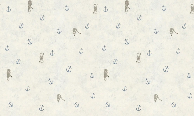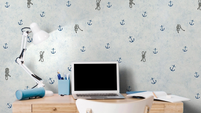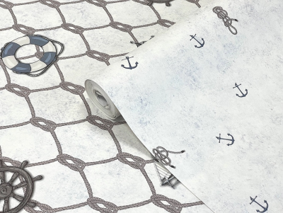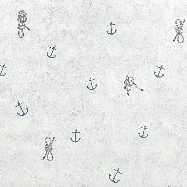 Рулонные обои Makario (Макарио) 3513-1 мотив якоря на бело-голубом фоне 1.06х10 м. винил на флизелине, Китай