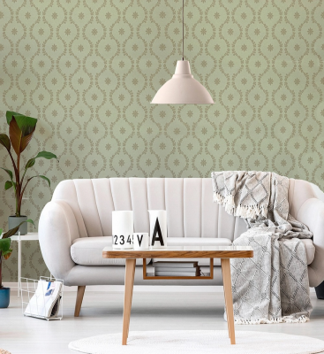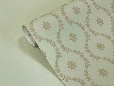 Рулонные обои Makario (Макарио) 3517-11 мотив золотой узор на зеленом фоне 1.06х10 м. винил на флизелине, Китай