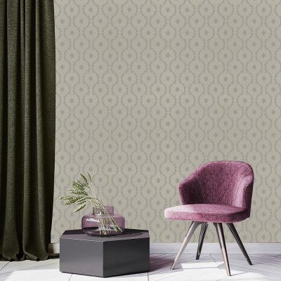 Обои Makario (Макарио) 3517-10 мотив серебрянный узор на розовом фоне
