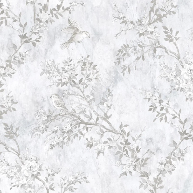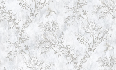 Рулонные обои Prima Italiana (Прима Италиана) 80325 птицы бежевые на серо-голубом фоне 1.06х10 м. винил на флизелине, Россия