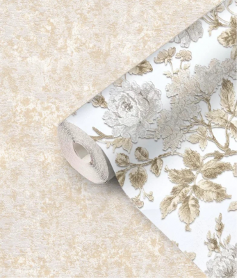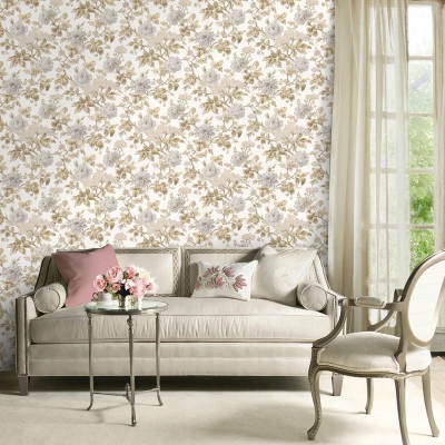 Рулонные обои Prima Italiana (Прима Италиана) 80702 серо-бежевые цветы на белом фоне 1.06х10 м. винил на флизелине, Россия