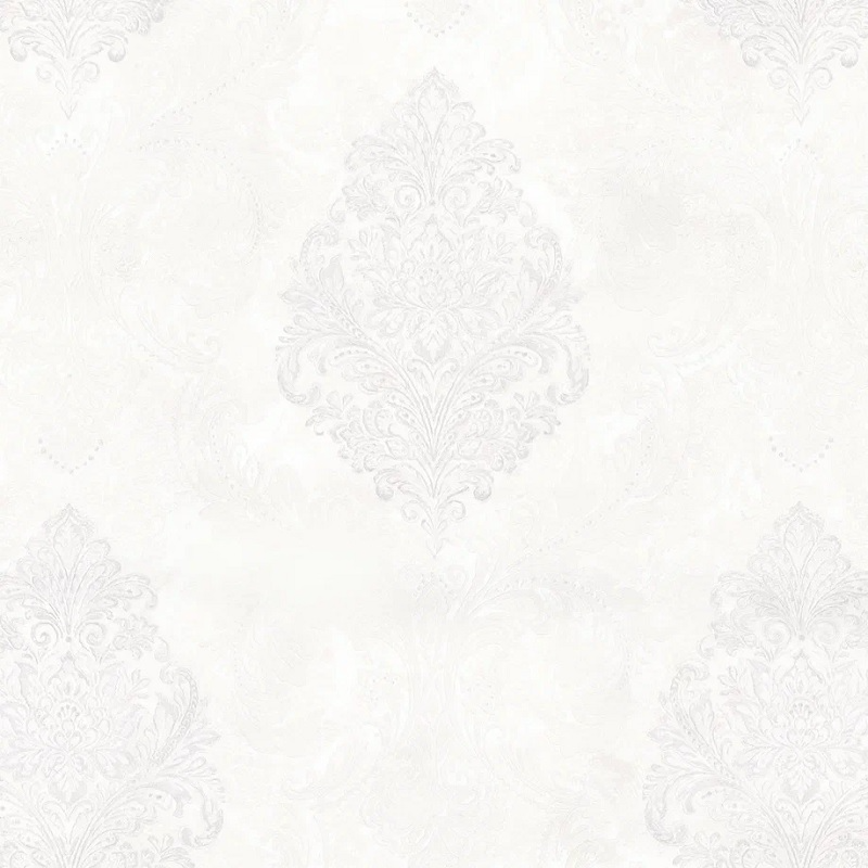 Рулонные обои Prima Italiana (Прима Италиана) 80525 мотив дамаск серебристый на белом фоне 1.06х10 м. винил на флизелине, Россия