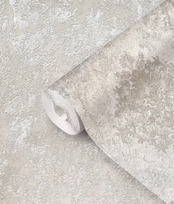 Крупный растительный дамаск, состоящий из нескольких частей, лег в основу мотива коллекции. Его центральный элемент, похожий на распустившийся бутон с лепестками, окружают соцветия поменьше. Словно алмазная крошка, внутри каждого из них аккуратными линиями сияет глиттер. Всю эту композицию обрамляет изящный контур из листьев, завернутых в разные стороны, концы которых слегка подсвечены перламутром. Рельефный, с переливами и мерцанием фон коллекции как и задний план мотива, представляет сложную фактуру из разных текстур.
