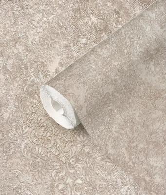 Акцентом второго мотива коллекции выступают роскошные крупные растительные дамаски. Специальный способ нанесения делает их объемными и фактурными, как будто они нарисованы кистью художника. Прожилки листьев обильно покрыты разноцветным глиттером, искрящимся под лучами солнца. Фон коллекции имитирует текстуру венецианской штукатурки. А вкрапления прожилок перламутра с глиттером придают фону благородный эффект мрамора.