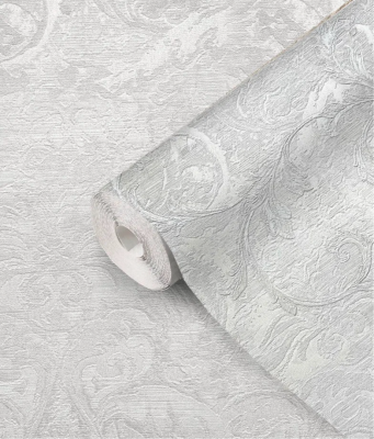 Крупный растительный дамаск, состоящий из нескольких частей, лег в основу мотива коллекции. Его центральный элемент, похожий на распустившийся бутон с лепестками, окружают соцветия поменьше. Словно алмазная крошка, внутри каждого из них аккуратными линиями сияет глиттер. Всю эту композицию обрамляет изящный контур из листьев, завернутых в разные стороны, концы которых слегка подсвечены перламутром. Рельефный, с переливами и мерцанием фон коллекции как и задний план мотива, представляет сложную фактуру из разных текстур.