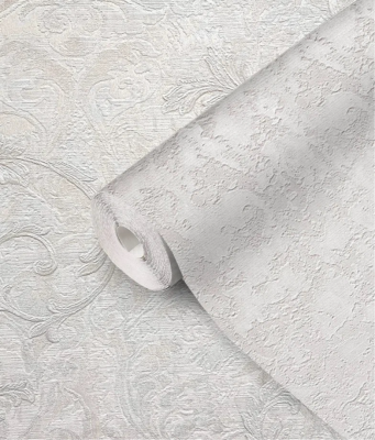 Акцентом второго мотива коллекции выступают роскошные крупные растительные дамаски. Специальный способ нанесения делает их объемными и фактурными, как будто они нарисованы кистью художника. Прожилки листьев обильно покрыты разноцветным глиттером, искрящимся под лучами солнца. Фон коллекции имитирует текстуру венецианской штукатурки. А вкрапления прожилок перламутра с глиттером придают фону благородный эффект мрамора.