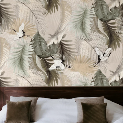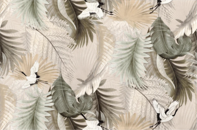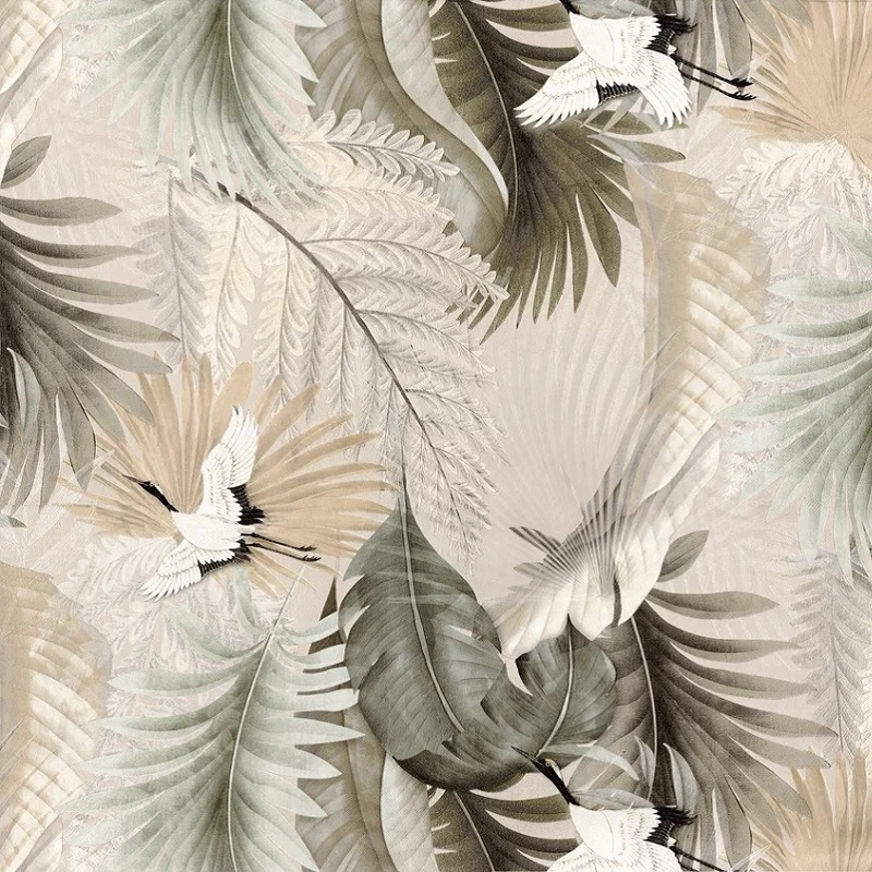 Рулонные обои Prima Italiana (Прима Италиана) 80476 мотив журавли на бежевом фоне 1.06х10 м. винил на флизелине, Россия