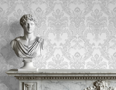 Дамасский узор — сердце коллекции. На обоях узор словно соткан из шелковистой нити. Мотив дамаска в интерьере всегда добавляет глубину и драматизм.
