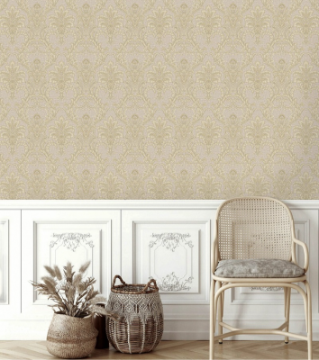 Дамасский узор — сердце коллекции. На обоях узор словно соткан из шелковистой нити. Мотив дамаска в интерьере всегда добавляет глубину и драматизм.