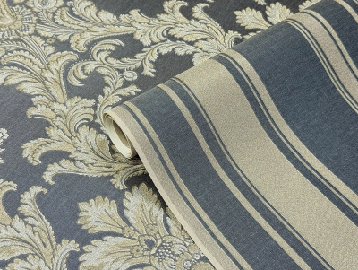 Рулонные обои Prisma (Призма) MS11211 полоса к дамаску синяя 1.06х10.05 м. винил на флизелине, Китай