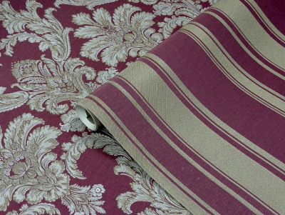 Рулонные обои Prisma (Призма) MS11214 полоса к дамаску золото бордо 1.06х10.05 м. винил на флизелине, Китай