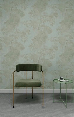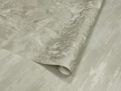 которые поднимаются над рекой ранним утром. Объединяет тропические мотивы компаньон, схожий с ними по структуре и рисунку, напоминающему туман. Он станет прекрасным фоном для интерьера в стиле минимализм или скандинавского лофта.