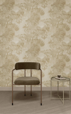 которые поднимаются над рекой ранним утром. Объединяет тропические мотивы компаньон, схожий с ними по структуре и рисунку, напоминающему туман. Он станет прекрасным фоном для интерьера в стиле минимализм или скандинавского лофта.