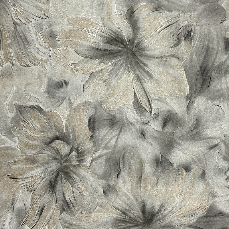 Рулонные обои Wiganford (Виганфорд) MK64301 мотив крупные цветы темно серые с золотом 1.06х10.05 м. винил на флизелине, Китай