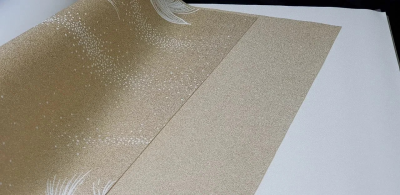 Рулонные обои Wiganford (Виганфорд) WG0106 мотив птицы на перламутрово золотом фоне 1.06х10.05 м. винил на флизелине, Китай