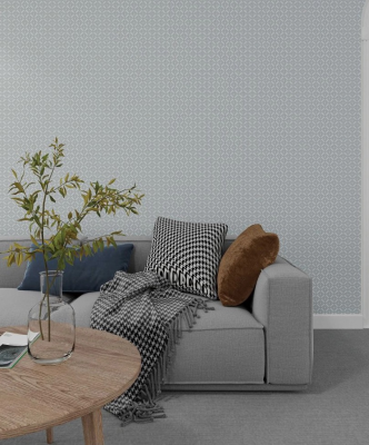 Рулонные обои Wiganford (Виганфорд) WG0401 мотив орнамент серебристый на жемчужной рогожке 1.06х10.05 м. винил на флизелине, Китай