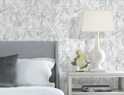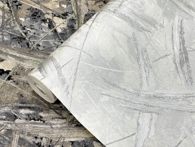 Рулонные обои Wiganford (Виганфорд) HK65606 мотив мазки серые с глитером 1.06х10.05 м. винил на флизелине, Китай
