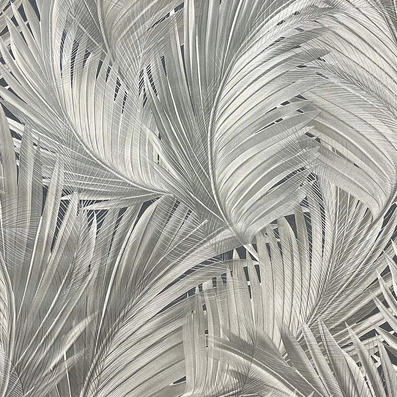 Рулонные обои Wiganford (Виганфорд) HK66054 мотив листья серые 1.06х10.05 м. винил на флизелине, Китай