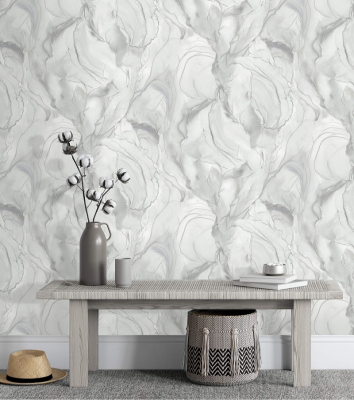 Рулонные обои Wiganford (Виганфорд) HK66203 мотив облачный муар жемчужуг 1.06х10.05 м. винил на флизелине, Китай