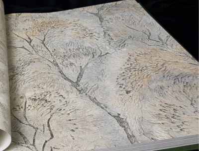 Рулонные обои Wiganford (Виганфорд) ER2208 мотив деревья бежево-серые 1.06х10.05 м. винил на флизелине, Китай