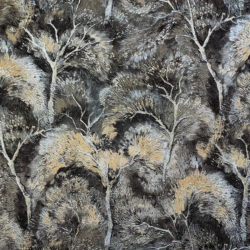 Рулонные обои Wiganford (Виганфорд) ER2218 мотив деревья черные с золотом 1.06х10.05 м. винил на флизелине, Китай