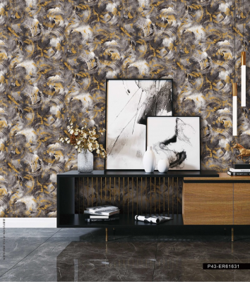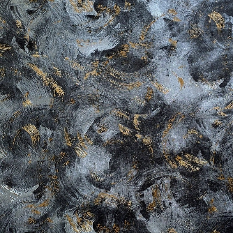 Рулонные обои Wiganford (Виганфорд) ER61631 мотив вихри черные с золотом 1.06х10.05 м. винил на флизелине, Китай