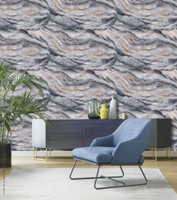 Рулонные обои Wiganford (Виганфорд) ER71218 мотив мраморный срез синий терракот 1.06х10.05 м. винил на флизелине, Китай