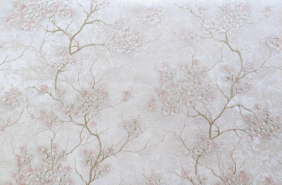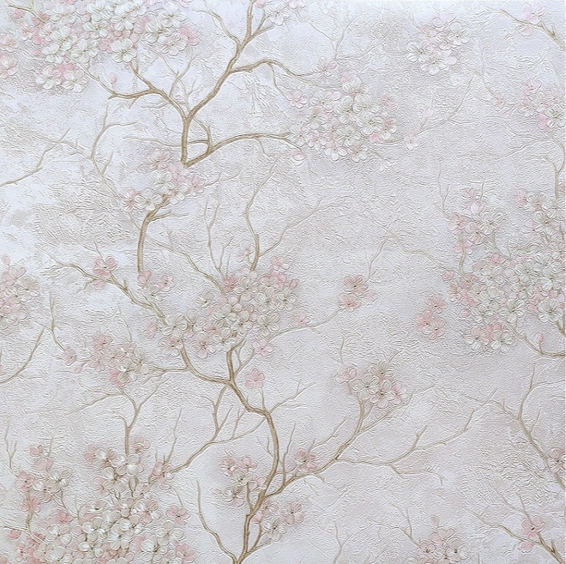 Веточки яблони, усыпанные мелкими цветами, привносят в интерьер нотку романтики и нежности. Эти обои создают атмосферу весеннего пробуждения, наполняя пространство светом и теплом.