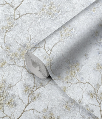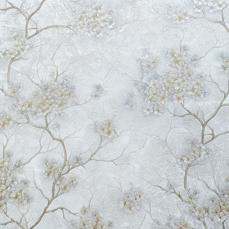 Веточки яблони, усыпанные мелкими цветами, привносят в интерьер нотку романтики и нежности. Эти обои создают атмосферу весеннего пробуждения, наполняя пространство светом и теплом.