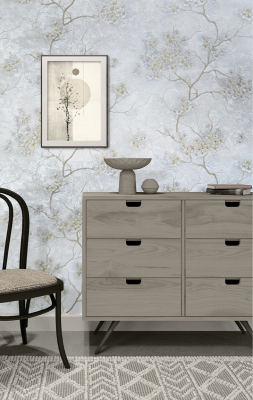Рулонные обои Wiganford (Виганфорд) ER71306 мотив сакура голубая 1.06х10.05 м. винил на флизелине, Китай