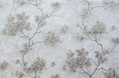 Веточки яблони, усыпанные мелкими цветами, привносят в интерьер нотку романтики и нежности. Эти обои создают атмосферу весеннего пробуждения, наполняя пространство светом и теплом.