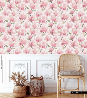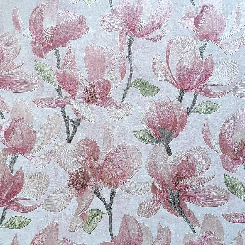 Рулонные обои Wiganford (Виганфорд) ER71701 мотив магнолии розовые 1.06х10.05 м. винил на флизелине, Китай