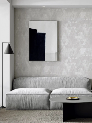 Рулонные обои Wiganford (Виганфорд) DTT2221 Мотив треугольники светло-серые 1.06х10.05 м. винил на флизелине, Китай