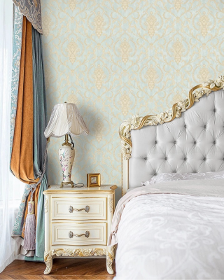 Рулонные обои Wiganford (Виганфорд) N55614 Мотив дамаск ажурный голубой 1.06х10.05 м. флизелин, Соедененное королевство