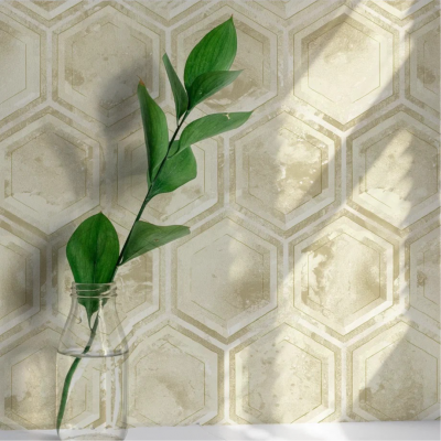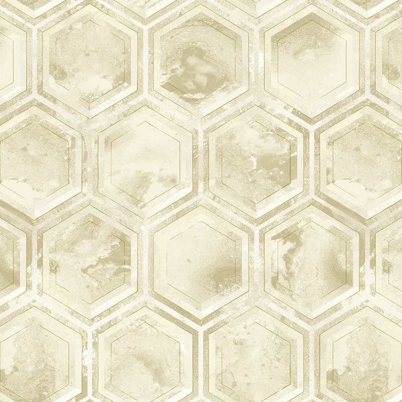 Рулонные обои Wiganford (Виганфорд) ER1409 мотив гексагоны бежевые 1.06х10.05 м. винил на флизелине, Китай
