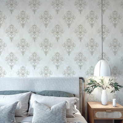 Рулонные обои Wiganford (Виганфорд) ER2701 мотив золотистый дамаск на белом мраморе 1.06х10.05 м. винил на флизелине, Китай